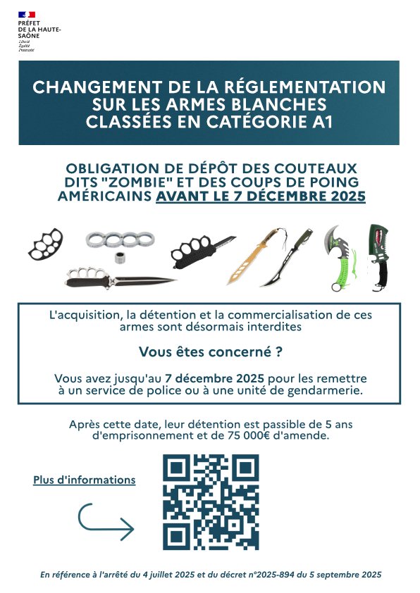 CHANGEMENT SUR LA RÉGLEMENTATION DES ARMES BLANCHES