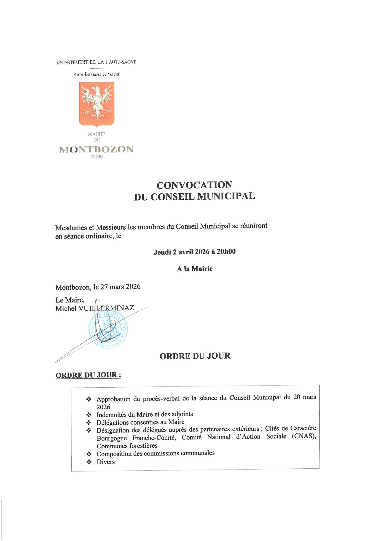 CONSEIL MUNICIPAL DU 2 AVRIL 2026
