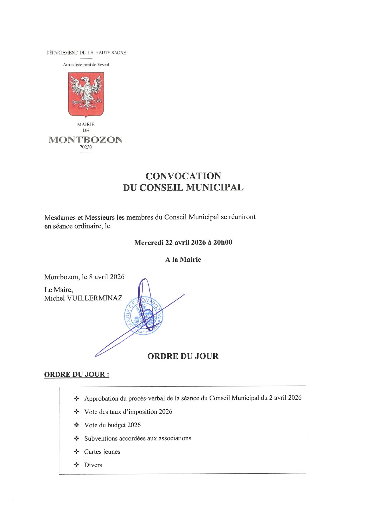 CONSEIL MUNICIPAL DU 22 AVRIL 2026